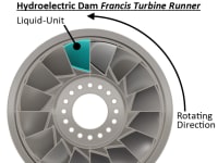 2nd Picture: Hydroelectric Dam Turbines (Left) divide water up into 16-Liquid-Units between 16-Blades, so MANY Liquid-Units have to pass through the turbine’s 16-Blades to rotate a turbine once in Prior Art.