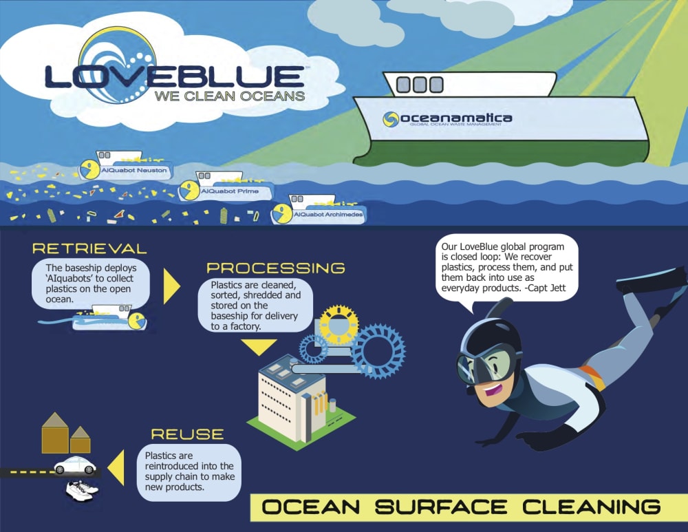 We also address the three largest and most readily available sources of plastics to be recovered- open ocean, sea floor, and rivers. While beach cleanup is a needed and noble effort, and as prevention efforts continue to make progress, we still have billions of pounds of plastics needing to be removed from the environment, as soon as possible.