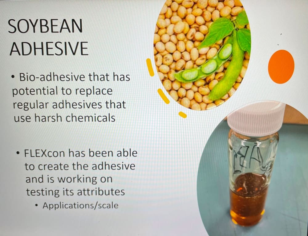 • UV cured, soybean-based adhesives should be furthered as a green alternative to typical fossil fuel derived products. This adhesive would foreseeably have large volume applications within the label and decal market due to its robust adhesion properties and low shear.