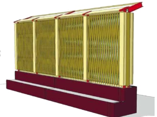 An urban noise and building envelope with built-in roof drainage system and with a low carbon footprint.