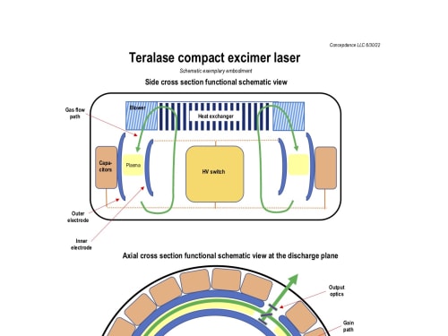 The current invention proposes novel, improved designs for high pulse energy transverse discharge gas lasers such as excimer lasers. The new designs provide an annular gain path, capitalizing on grazing incidence reflections from laser electrode surfaces and enabling the engineering of very low inductance electric discharge circuits, efficient gas circulation,