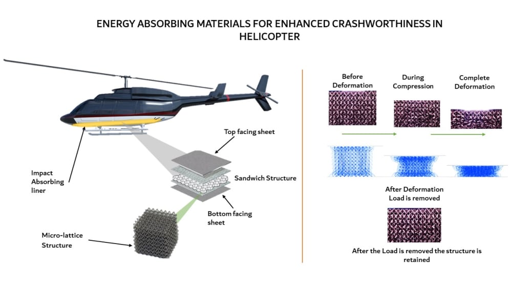For helicopters, the development of a floor lining made of a sandwich micro-lattice structure holds the potential to greatly improve the safety of passengers and crew during an unfortunate turn of events like a crash landing. These crashes can be cataclysmic and sometimes fatal. One factor that plays a significant role in the severity of these crashes is the impact forces that permeate through the aircraft during the crash. Hence, an aptly designed floor can reduce the severity by absorbing and distributing these impact forces more effectively.