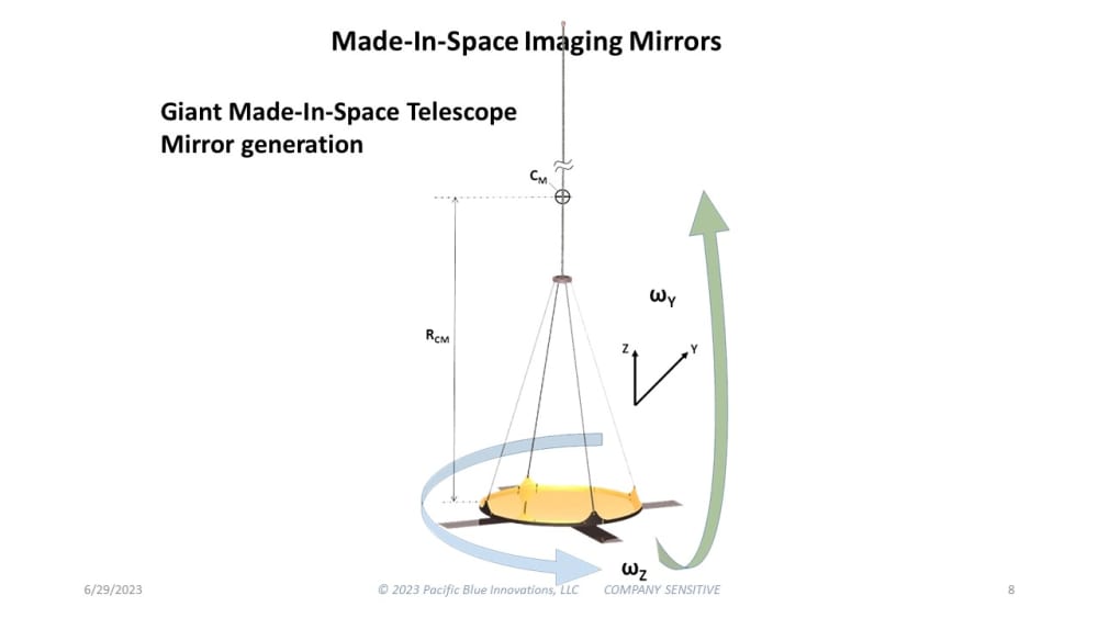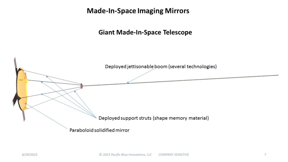 The resulting mirrors can be extremely large (50-100 meters in diameter) at a cost of 10,000x lower than Webb.