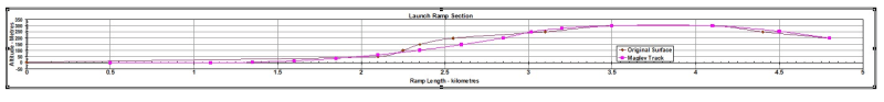 The launch cradle, on separation, continues under SC maglev braking assisted by hydrogen/Air turbojets is brought to a standstill on the remaining 2.5 km of maglev track and returned to the start point.