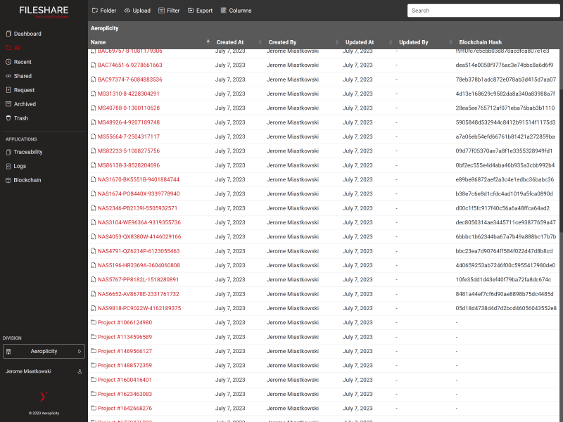 Aeroplicity spearheads a new era in the aerospace and defense sector, enabling businesses to achieve compliance, enhance cybersecurity, optimize supply chain operations, and digitally deliver certification documentation. Our groundbreaking platform, backed by blockchain technology and an open REST API, ensures data integrity, streamlines processes, and fosters interoperability. With our practicality, scalability, and user-friendly design, Aeroplicity offers an unmatched solution for businesses seeking compliance while maximizing operational efficiency, reducing costs, and delivering digital certification documentation with ease. By empowering organizations to navigate complex regulatory landscapes seamlessly and meet the evolving needs of the industry, Aeroplicity drives the transformation towards a more secure, streamlined, and competitive aerospace and defense industry.