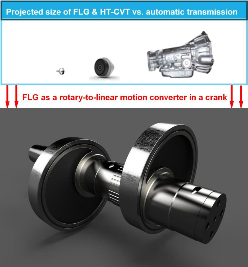...NOTE-BENE: The FLG is a positive-engagement technology, NOT a friction device like most other CVTs, and therefore significantly superior [i.e. zero-slip, ultra-high torque capacity]. Prototypes are made !