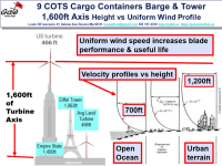 Either new blades & pole design are electroplated in 1,600ft “watering trough” plating tank at mooring site on COTS cargo container barge OR using COTS tower cranes, COTS cargo containers are stacked so an existing traditional turbine can have its axis at 1,600ft elevation supported by COTS cargo container barges for guaranteed successful generation in case completely new turbine/pole design is considered too radical for an unknown entity. (Particle Interconnect usage/paper was presented by Raytheon & NSA Wright-Patterson AFB classified trade show, March 1996 MDA904-94-C-6210.)