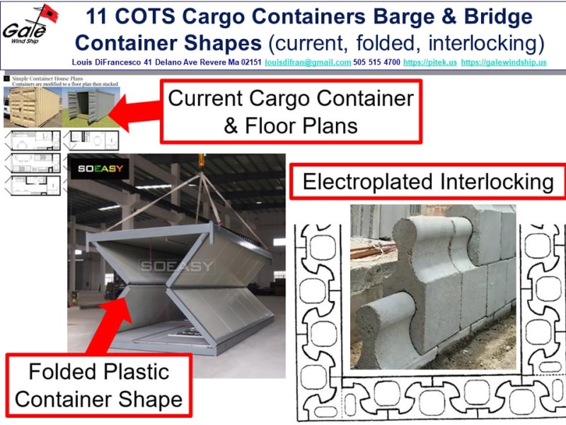 COTS CC’s hand labor bonding on to a ship’s structure is being compared to COTS CC’s automatic bonding together to float or move in ship-like fashion. The difference is traditional cargo containers sitting on the ship vs floating on the water. The ship is eliminated.