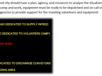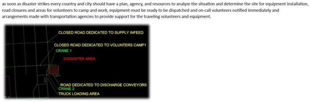 Every country and city should have a plan, agency, and resources to analyze the situation and determine the site for equipment installation, road closures, and areas for volunteers to camp and work, equipment must be ready to be dispatched and on-call volunteers notified immediately and arrangements made with transportation agencies to provide support for the traveling volunteers and equipment that can be activated and sent to the nearest location when needed.