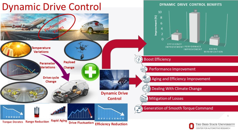 To address the crucial issue of electric machine performance degradation due to the harsh environment and operating conditions a design has been developed based on the dynamic drive control (provisional patent filed). The dynamic drive control scheme facilitates the control of multiphase electric machines to overcome the problem of thermally derated torque, minimizing the loss of lifetime (aging), and improving the energy conversion efficiency of the multiphase electric machine. A dynamic control scheme allows the controller to schedule (re-compute) itself based on the changes observed in the parameters of the electric drive system to address the issue of thermally derated torque. It utilizes the machine’s losses to compute the optimal flux demand to ensure improvements in the energy conversion efficiency of the machine and develop a dynamic relationship between road load demands and flux. The optimal cost function is formulated based on the operating voltages and currents’ constraints to minimize aging.