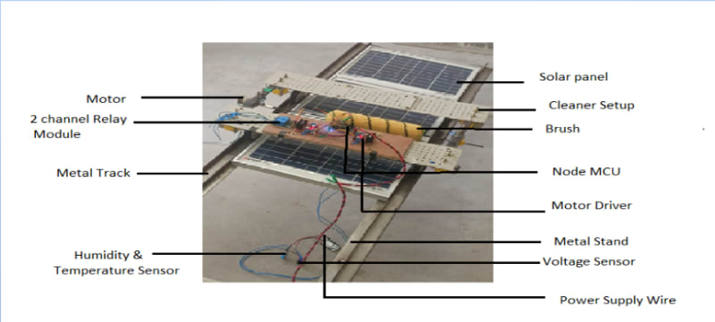We suggest a programmed solution that uses a wiper and water or doesn't need water to clean solar panels. Technology from the Internet of Things (IOT) is used to carry out the project. Numerous sensors and the Node MCU will operate the system. Android devices may be used to operate the system to reduce the need for frequent site visits. This system is designed to be portable, so that it might be used in other places. In comparison to current models, ours can increase the efficiency and lifetime of solar panels. Budget-friendly, and everyone can afford it. Solar farms may be managed remotely with a smartphone application, eliminating the need for frequent visits.