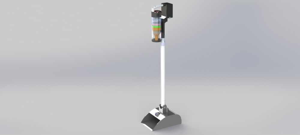 Sweeping is often a hassle especially when dustpans don’t scoop up all the debris leaving unpolished floors. Traditional vacuums are bulky and can scratch floors. And the new autonomous vacuums, such as Roomba, are great but time consuming, do not climb up stairs, and are limited by the size of the debris they can pick up. That is why a vacuum augmented dustpan, called Gizmo, was created. Gizmo is a state-of-the-art appliance that incorporates a touchless sensor that can detect a broom for hands-free activation of the vacuum allowing debris to travel into the dustpan and into the vacuum. The vacuum can also separate from the dustpan creating another separate appliance for handheld use: a handheld vacuum.