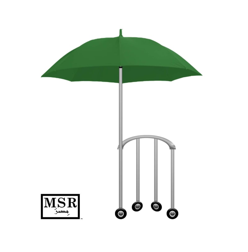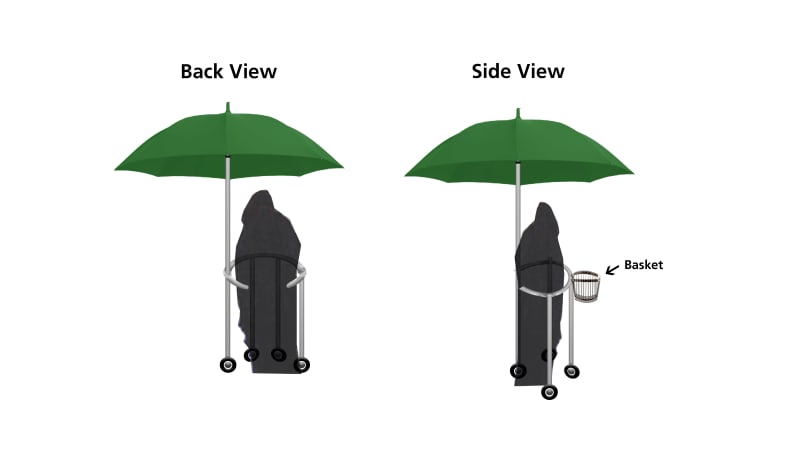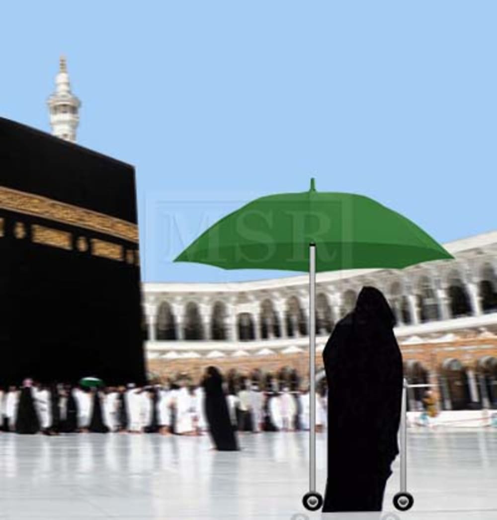 Simply it's a walker/stroller for old people installed in an umbrella, which can be best used for serving the pilgrim people during their Hajj circumambulation. Especially old people who cannot walk well due to stamina issues and under sunlight also at the same time.