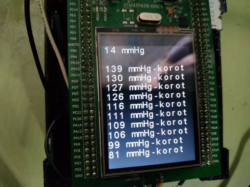 - Calculate the heart rate from the Korotkoff sounds; and display the hart rate with the systolic and diastolic pressure on the screen;