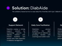 DiabAide is an innovative system designed to support families with children suffering from type 1 diabetes by connecting parents with students and seniors trained in diabetes management.