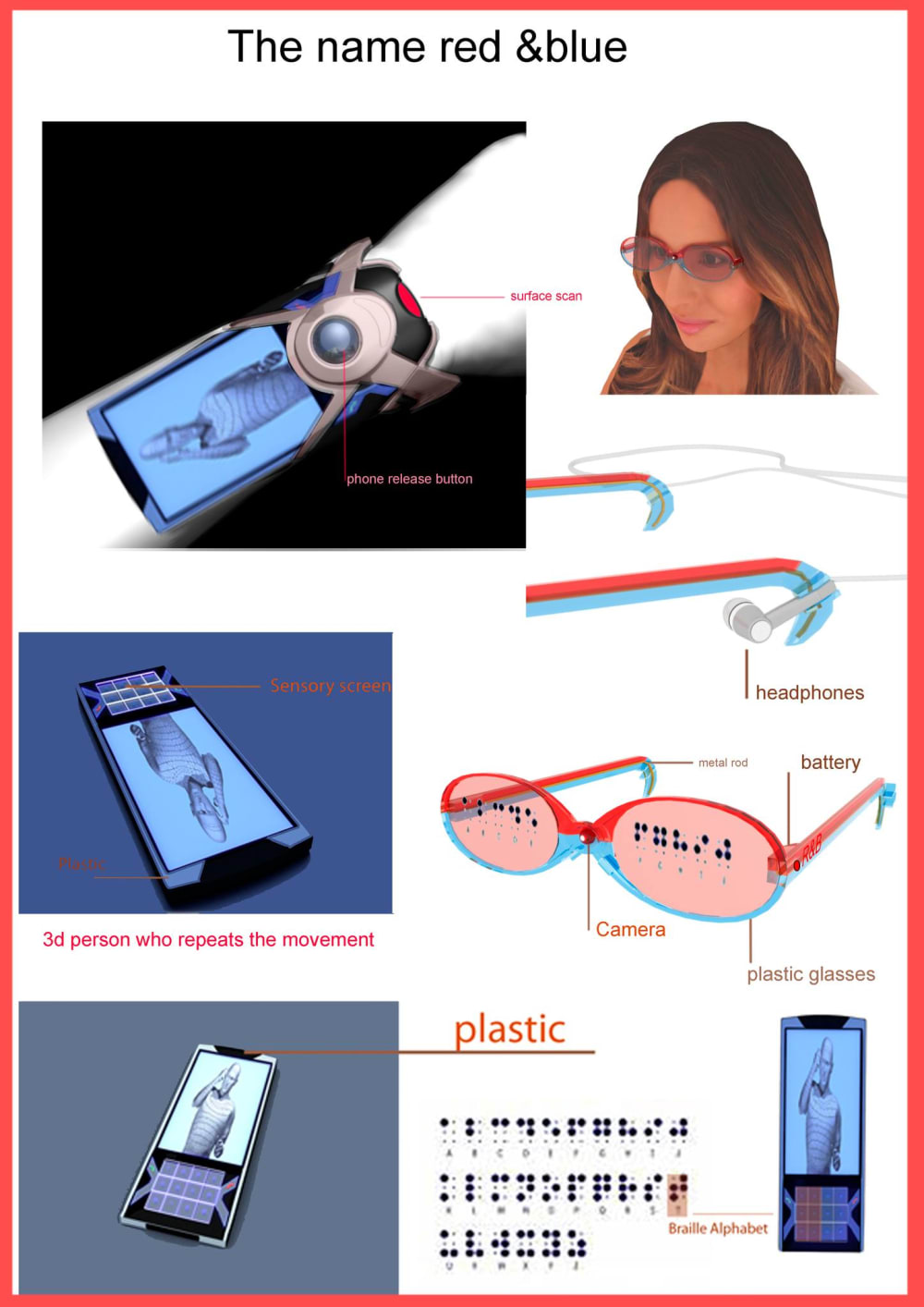 The information is transmitted via the keyboard (Braille keyboard) on the screen. In this way the information is transmitted to the sensor on the phone cover that is attached, capturing human hand movements and transforming them into a 3D image on the phone.