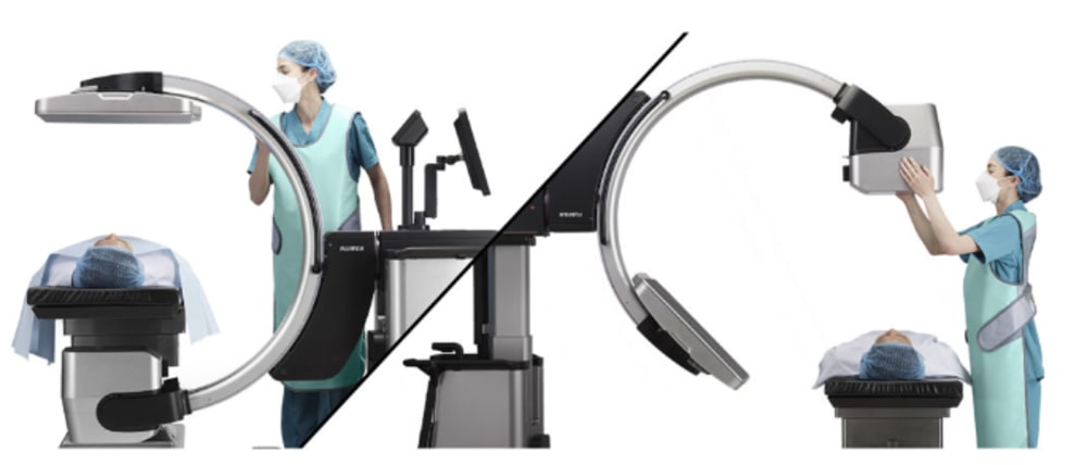 X-ray tubes and detectors are affixed to opposite ends of the C-arm, enabling them to encircle around the operating table keeping the detector and tube aligned to capture live (moving) fluoroscopic images. While the machine’s pivoting tube and removable detector also allow for various free positioned mobile x-ray exams. Highly maneuverable and ergonomic, the design is significantly lighter and provides one of the largest open areas (84cm) for its size and class, providing optimal clinician access to the patient during procedures and allows effortless changes between image capture methods.