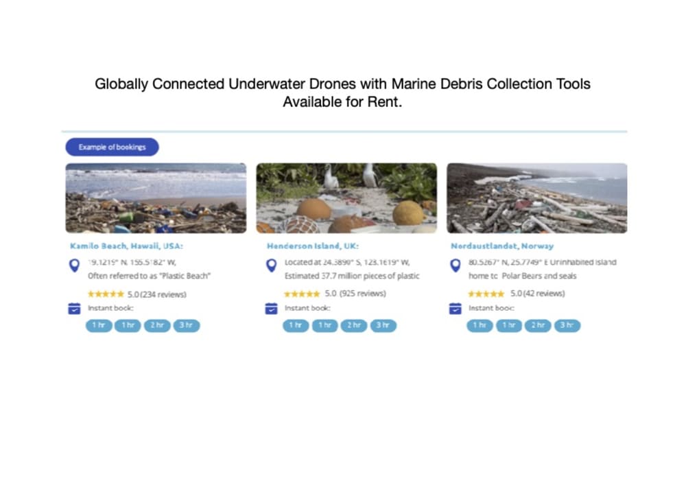 This is an an automated platform to streamline the collection of marine debris. The online system connects a global network of already owned Remotely Operated Vehicles (ROVs) to individuals concerned for the environment. It will include small ROVs that go to100m, or others like our own models, that goes to 500m. They will have our marine debris collecting tools attached to them, retrofitted and compatible with many brands of ROVs.