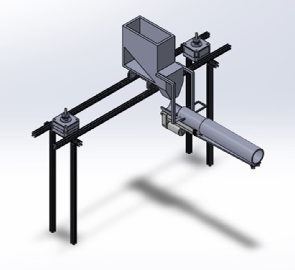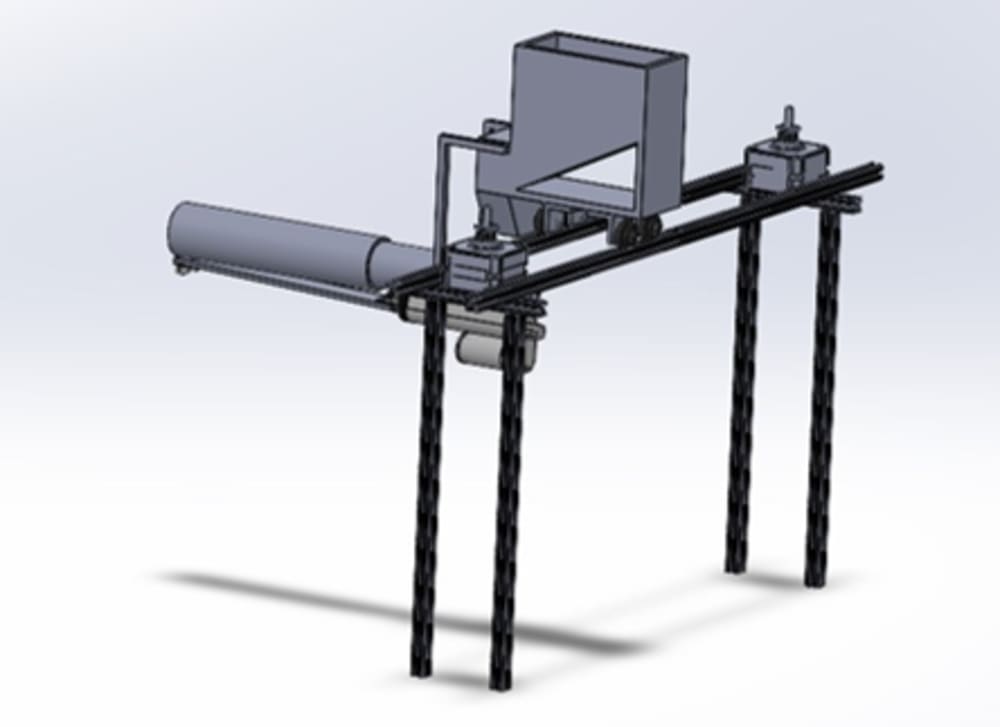 One of the main factors affecting the cost of running broiler chicken farms is the labor cost. Automation systems can eliminate this cost helping farmers increase their profit margins. However, the currently existing system of using screw conveyors has a few disadvantages. The main disadvantage is the inability to transfer the exact size of feed linearly throughout the entire farm. This is caused by centrifugal forces which cause the heavier chicken feed to drop in the earlier feeding containers and lighter feed to only drop in the later feeders. Due to several factors such as the chickens' preference to eat bigger feed and the digesta transit time, the chickens that consume the lighter feed end up not growing to their full potential, resulting in lower profits. Therefore, I have designed a system which uses a combination of rails, robotics, and sensors to eliminate this issue and feed the chicken containers linearly and consistently which would result in a more consistent feeding and growth pattern for the chickens across the entire farm.