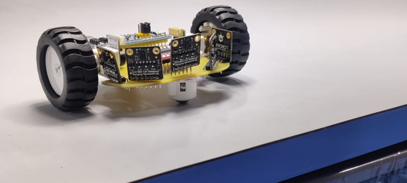 OUR PRODUCT: The main scope of this project is to build an STM32 microcontroller-based autonomous maze solver micro mouse. An STM32-based micromouse maze solver combines the power of the STM32 microcontroller, sensors, and a maze-solving algorithm to autonomously navigate through a maze. It is a fascinating project that integrates electronics, robotics, and programming, offering a practical learning experience in embedded systems and autonomous navigation. Micromouse is made of STM32F103C8T6, TB6612FNG Motor Driver, N20 Motors, VL61806TOF Distance Ranging Sensor. We had interfaced STM32 with five TOF Sensors, TB6612FNG Motor driver and two motors. The main principle of the micro mouse is to solve the maze and find its destination as soon as possible. PID and Flood Fill algorithm is used in this mouse. Single Layer-Printed Circuit Board (PCB) micromouse is designed. It is fabricated and assembled at an in-house facility. The dimension of micromouse is about 80 mm x 80 mm.