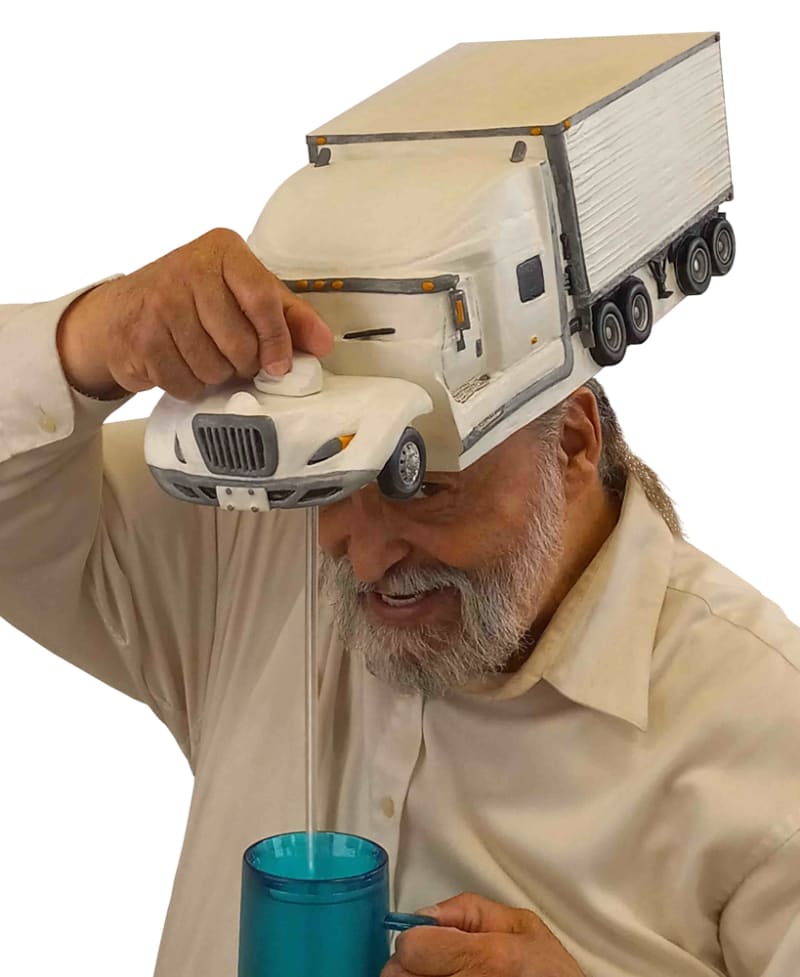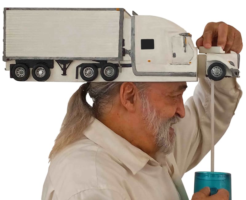 RoFo EIGHTEEN-WHEELER BevDisHeadgear beverage dispenser. A42B1/004 - Decorative arrangements or effects: Hats, caps and hoods with special decorative arrangements or visual effects. I, Randall Flann, aka RoFo, was awarded a United States Patent: October 19, 1999, U.S. Patent number: 5966743A, Office Européen des Brevets (European Patent Office) Publication number: WO9939598 (A1) and the Office de la Proprit Intellectuelle du Canada, an agency of Industry Canada (Canada’s PATSCAN) Official document for the invention, Substance Dispensing Headgear. RoFo Enterprise, Corporation. RoFo {Rō Fō} Enterprise, Corporation creates and develops for production uniquely absurd designed trademark name RoFo headgear and RoFo BevDisHeadgear beverage dispenser for the purposes of national and international wholesale distribution. It’s recognized globally brand slogan: “RoFo Headgear – The only hat that gives good head… of foam!” Lightweight plastic beverage dispenser contains, transports being equally distributed upon a person's head resulting in dispensing a beverage in a safe, efficient method while worn on the head. It is a functional innovation in containing, transportability and dispensing of a beverage, to, from, and at a location, during any time.