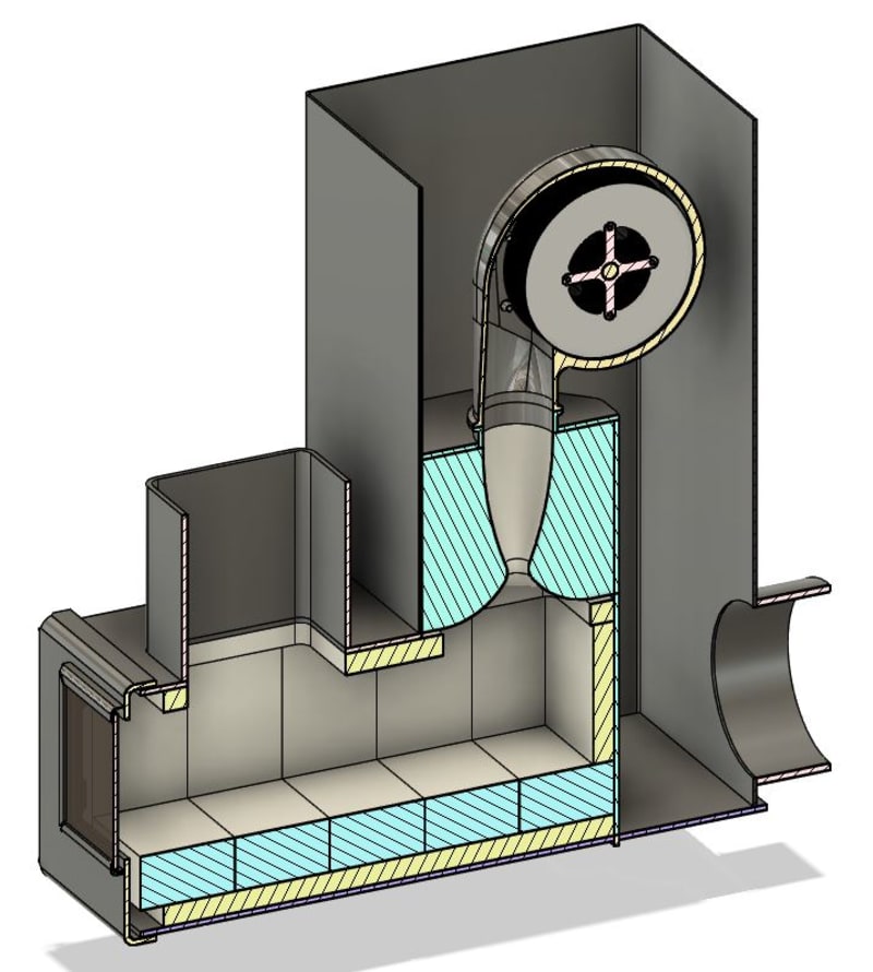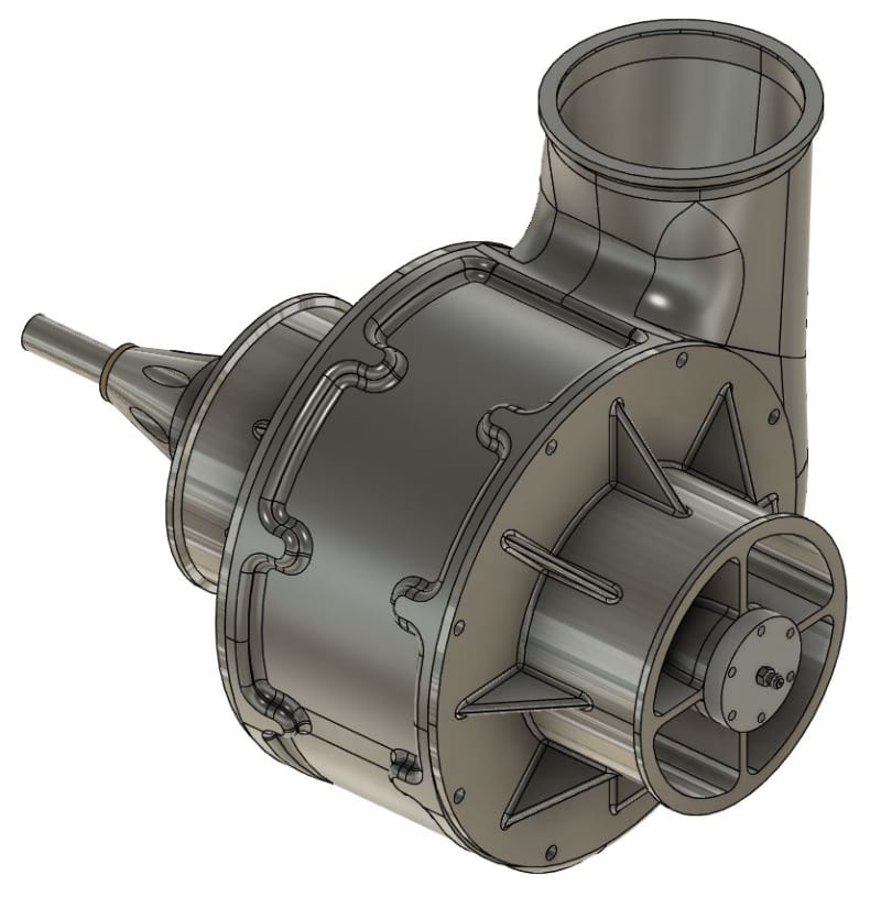 The Tesla turbine is a perfect fit for this mission profile, as bladed turbines would erode due to entrained ashes/particles in the combustion gases, whereas Tesla turbines are virtually impervious to entrained particle contamination. The centripetal force of the turbine will prevent ash from accumulating, thus creating a self-cleaning catalytic combustor that is virtually maintenance free. This catalytic combustor/turbine hybrid will be fed by combustion gases that will be accelerated to supersonic speeds via a refractory de Laval nozzle cast directly into the combustion chamber of a rocket stove in order to improve the efficiency and power output of the turbine. Catalysis rates will be increased due to the vastly larger surface area of the tightly packed discs in the turbine as well as the longer residence time of the spiral flow of the gas through the turbine. The turbine and compressor are to be electrically de-coupled to provide full range of control and integrate directly into solar battery systems. The DC motor will spool up the compressor faster than the natural acceleration offered by the turbine of a typical common-shaft turbine. This faster pressurization of the combustion chamber will prevent backdrafting and allow for a considerably faster warmup time which reduces emissions during the ignition phase of the heater’s operation. The motor will also be capable of controlling the burnout phase of the heater in order to further reduce emissions. Tachometers, anemometers, thermometers, and O2 sensors will be integrated into the heater to provide real time feedback to better control emissions and power output.