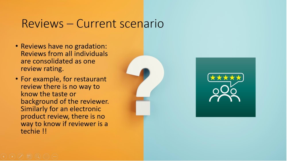 Today's review rating are static in nature and does not change based on user preferences. There are many proposed solutions for adaptive review based on user preferences. However, it is very difficult to device correct preference set for every product. In addition, preferences and not always objective and maybe interdependent on other factors. What is proposed here is an adaptive review rating schema based on user rating of existing reviews and preferences derived out of review of existing purchased products.