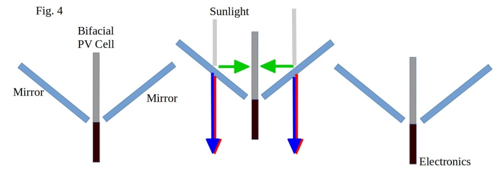 With full mirrors the panel is less sensitive to direction, but still runs cooler than regular PV panels, and has twice the catchment area per cell, which can make it more cost effective.