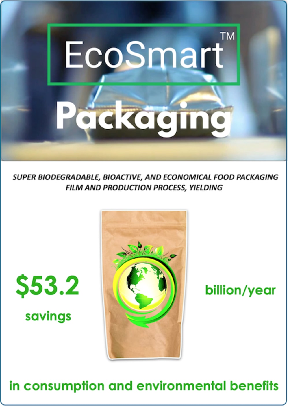 EcoSmart™ Super Biodegradable, Bioactive, and Economical Food Packaging Film and Production Process