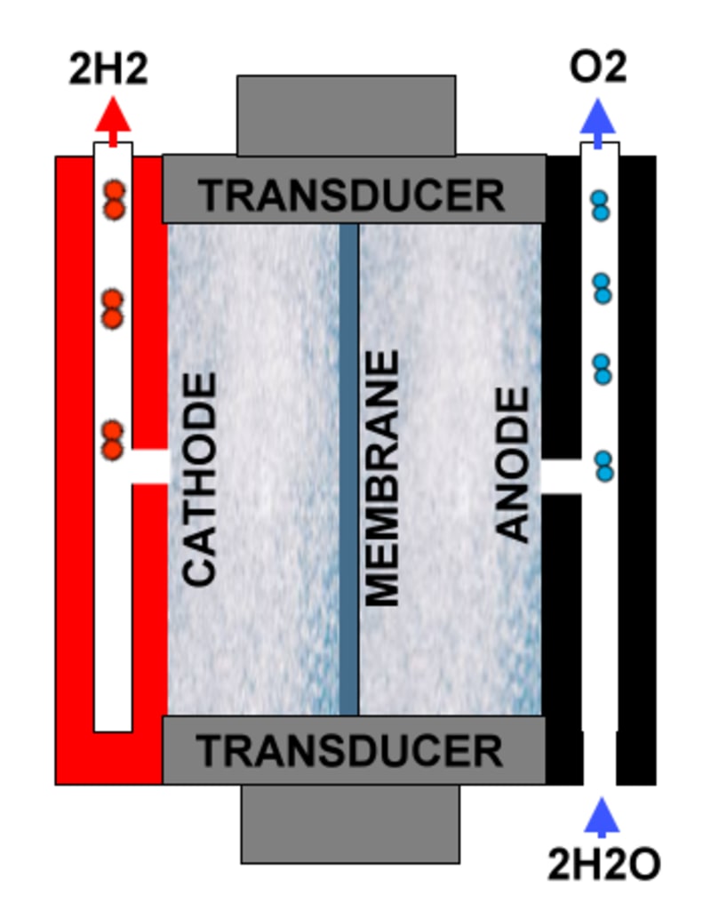 Current electrolysis systems require a large amount of electrical energy. This technology is the result of decades of research and development focused on using sound (acoustic) energy to greatly improve the efficiency of GREEN HYDROGEN production and thereby reducing the cost of producing safe, carbon free Green Hydrogen from water.