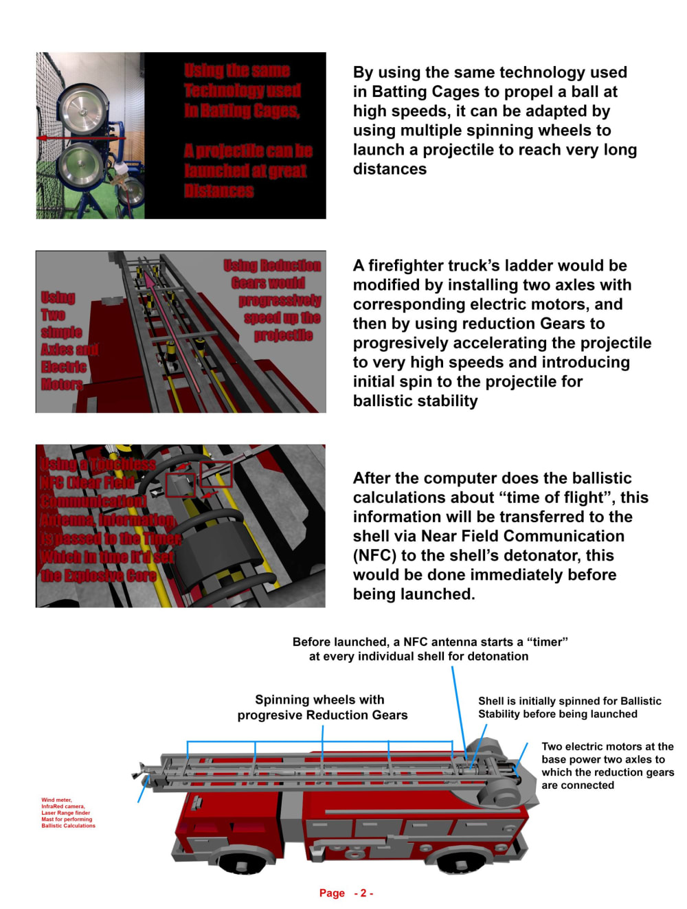 This invention relates to a modified firefighter truck, in which a telescoping ladder has been repurposed with multiple spinning wheels to launch a shell consisting of a fire retardant powder with an explosive core. Set to detonate right on top of the fire, it can fire 2 shells every 3 seconds.