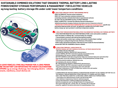 • IDEA-SOLUTION: SUSTAINABLE COMBINED SOLUTIONS THAT ENHANCE THERMAL BATTERY LONG-LASTING POWER/ENERGY STORAGE PERFORMANCE & MANAGEMENT FOR ELECTRIC-VEHICLES