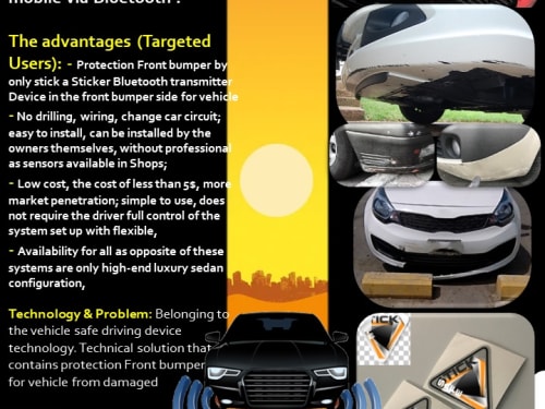 It’s Protect Front bumper of damage due to pavement by mobile via Bluetooth alarm system control as a (Sticker will be stick it in the Front Bumper) with connected mobile via Bluetooth.