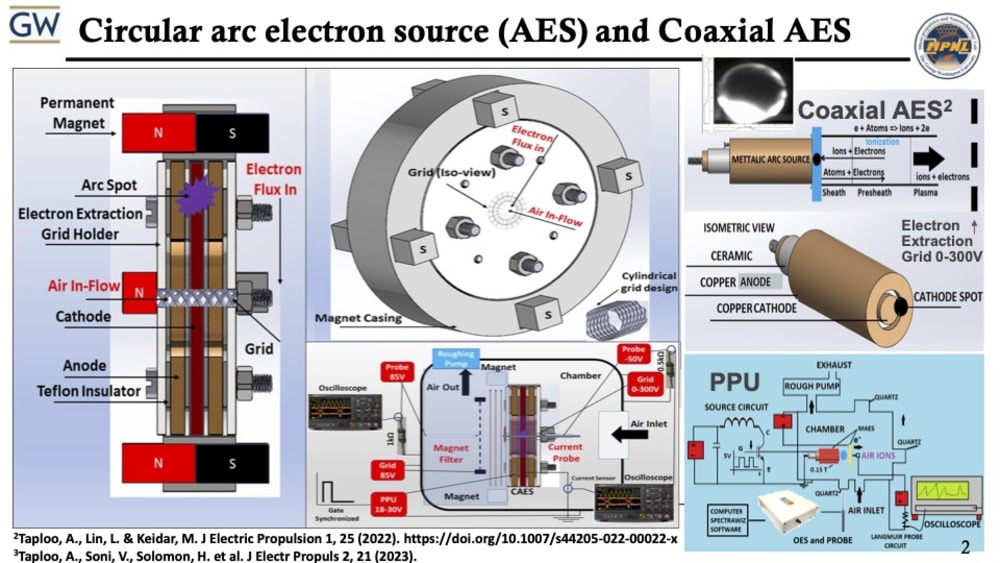 Presently, there is a global consideration for air-breathing electric propulsion ramjet configurations, though those utilizing air scoops face significant momentum losses due to air collimation and drag. Several years ago, an idea emerged for a direct scramjet configuration aimed at reducing drag substantially, requiring full ionization of atmospheric molecules. This concept introduced a new mode of operation for air-breathing thrusters, termed self-neutralizing air-breathing plasma thrusters (SABPT), wherein control over ion production is achieved through electron energy. Initial testing has shown promise in producing both positive and negative ions, laying the groundwork for SABPT utilization.