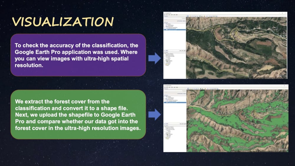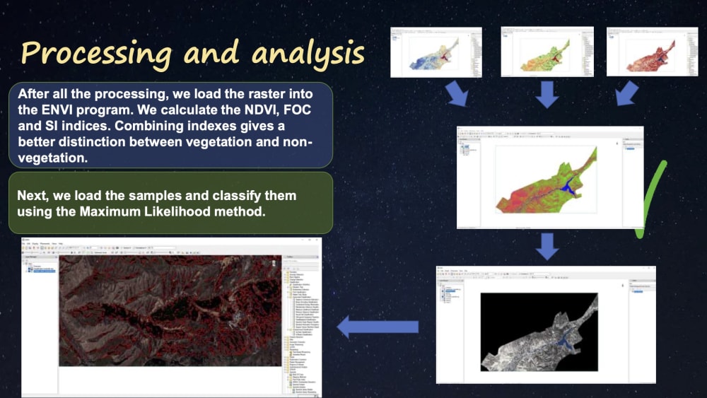 Identification of forest cover makes it possible to identify cases of illegal deforestation or cases of fire. It is also possible to digitize trees point-by-point, thus it is possible to calculate biomass using SAR images. Having obtained biomass, it is possible to determine approximately whether there are enough trees planted per capita.