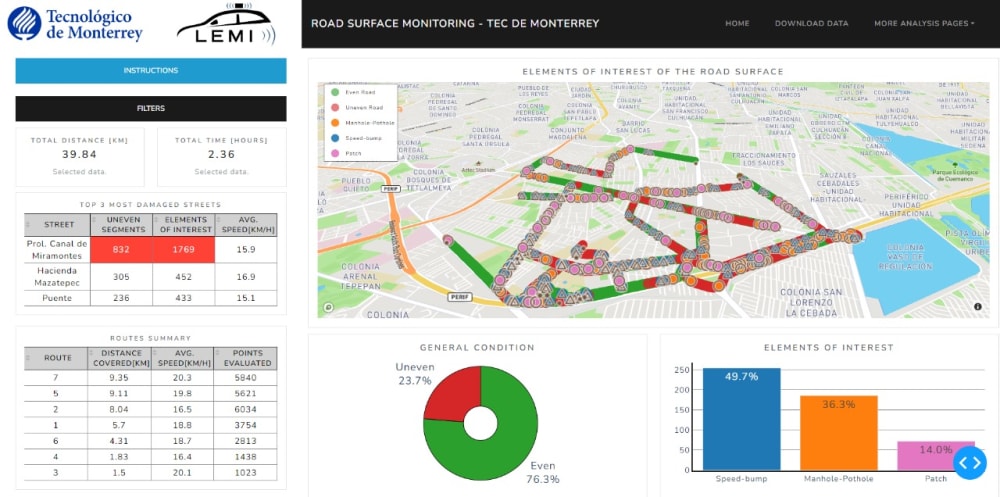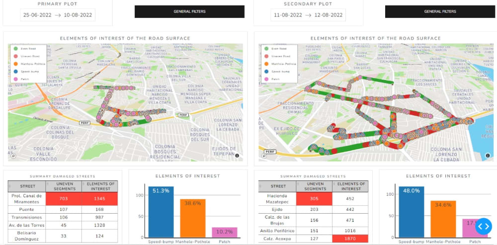 Justification: Urban infrastructure plays a vital role in connectivity and development in Mexico City. However, effective management and maintenance of this road network face numerous challenges, from early identification of pavement deterioration to resource optimization for repairs and maintenance. These challenges are exacerbated as the city grows and lead to inappropriate or risky behaviors by drivers and road users. In 2017, approximately 19 million daily trips occurred within the city, with 77% of those trips using the road network. By 2020, the road network extended to 13,349 km.