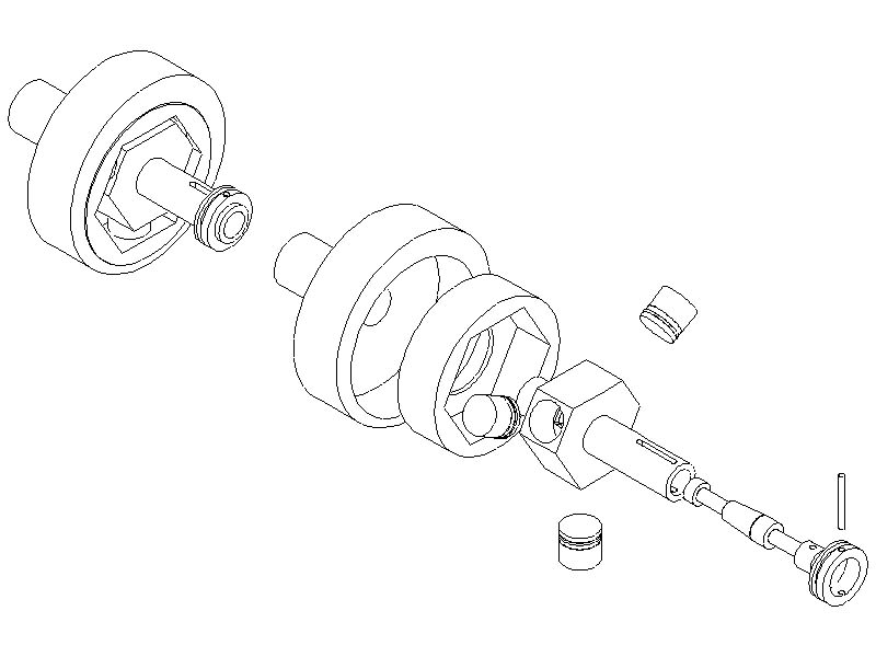 The mechanism is not complex. It consists of a disk with an eccentric recess (this would likely be attached to an engine flywheel), an eccentric follower, a cylinder housing containing a minimum of three radial cylinders and pistons with hydraulic seals and a valve mechanism with external means to position it. The clutch can also be constructed with any number of cylinders/pistons greater than three.