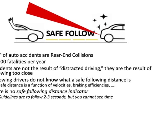Rear-end collisions account for 33% of accidents on U.S. roads. This class of accident accounts for 44% of fatalities (50,000 deaths per year).