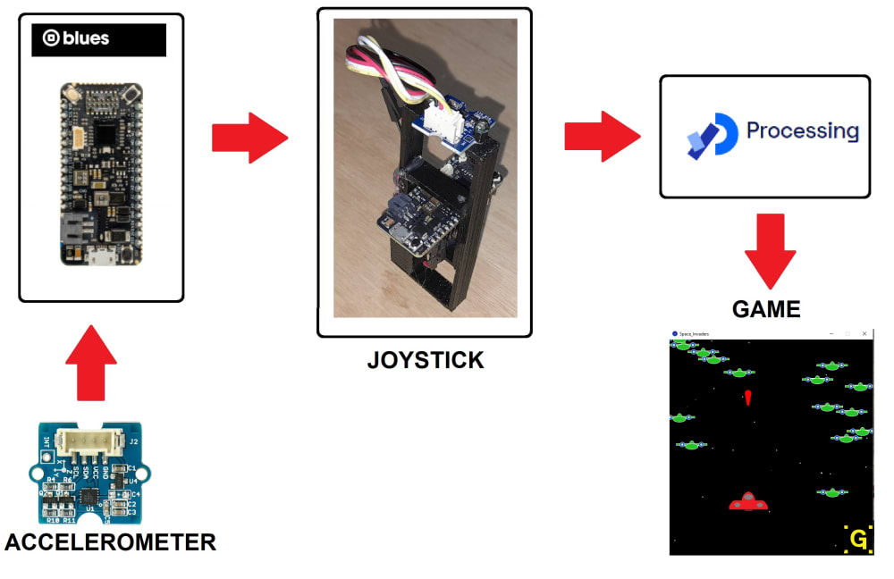 In this first version project let's try to have fun for people with disabilities. Let us create a game for PC or laptop, and play it using your hand’s movement with a portable and light device. We are creating the classic Space Invaders Game using Blues Swan board, and an Accelerometer.
