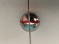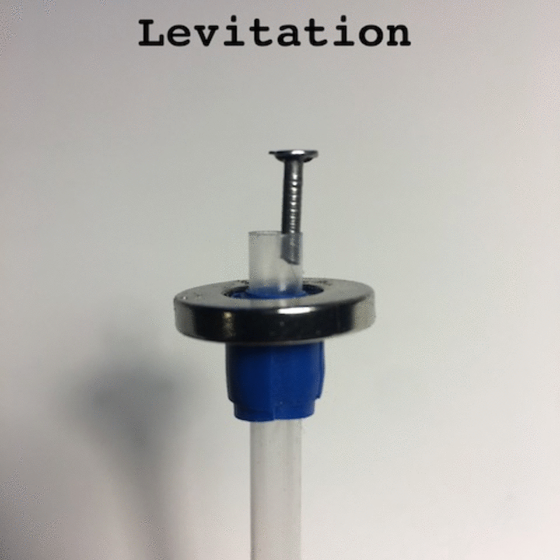 Conventional wisdom dictates that a permanent magnet does not repel an unmagnetized object made of ferromagnetic material (Fe, Co, Ni, etc.). However, a small rod-shaped unmagnetized object (e.g., a cut nail) made of ferromagnetic material placed just above a ring-shaped permanent magnet causes magnetic levitation along the central axis of the ring-shaped permanent magnet due to induced magnetism! The repulsive force is quite unstable, so the rod-shaped unmagnetized object made of ferromagnetic material must be supported by a tube (e.g., a plastic straw) above the ring-shaped rare-earth magnet, as shown in Figure 5.