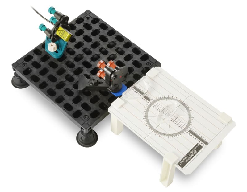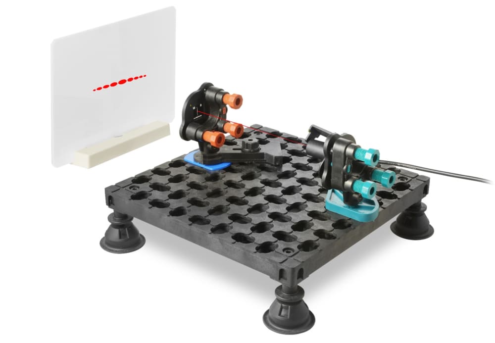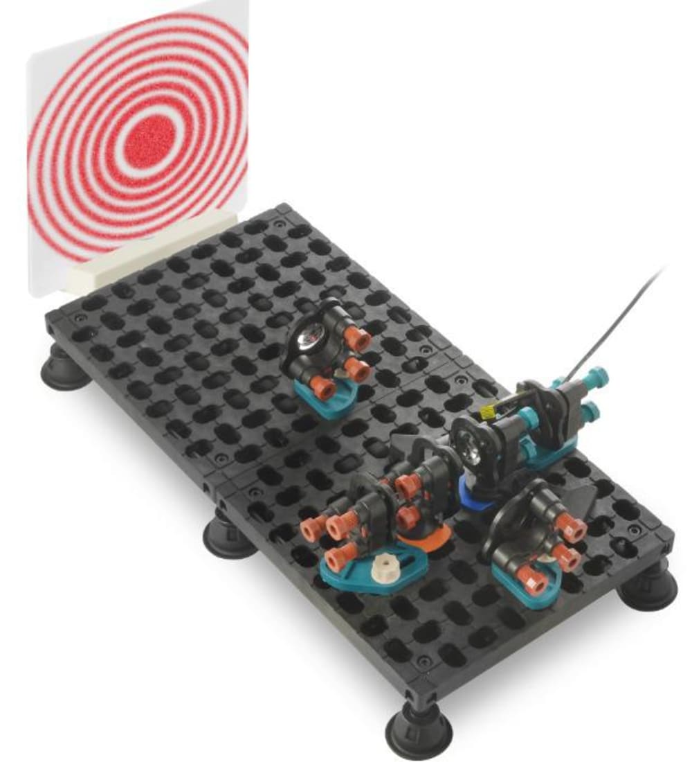 We make optical kits capable of showcasing several experiments. Our kits are made mostly from injection molded engineering grade glass filled polymers, and they operate similarly to industry standard products, but at a lower cost. Our kits are modular. This allows users to come up with their own experiments, even by adding other industry products which are also compatible with our kits.