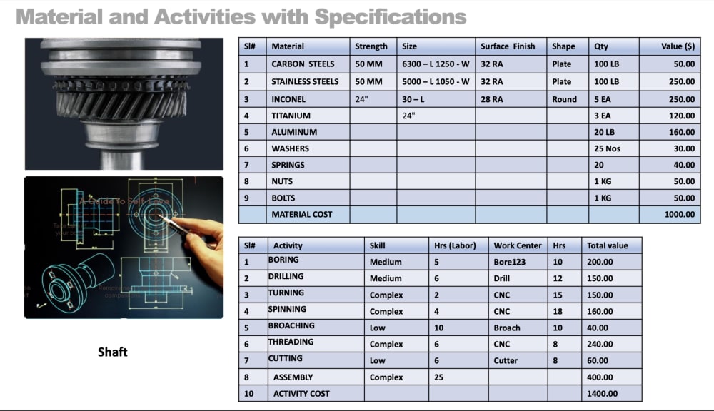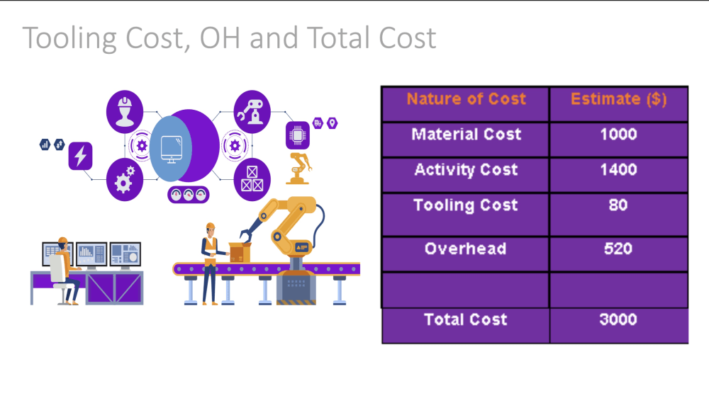 10) Each activity in the canvas will be identified to a machine / resource needed, effort involved and skill level of the worker and associate the activity cost based on the optimum productivity.