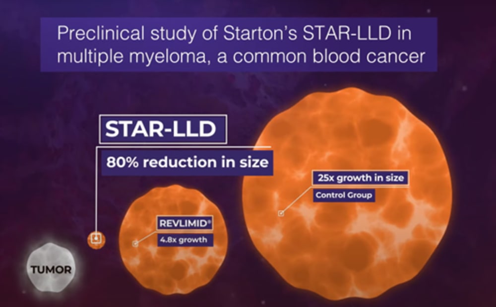 A Phase 1 clinical study to assess pharmacokinetics versus the oral formulation was completed successfully, meeting all primary and secondary endpoints. A Phase 1b study is currently ongoing evaluating the safety, efficacy, and PK of continuous subcutaneous administration of low-dose STAR-LLD in patients with multiple myeloma. Starton also intends to conduct a Phase 1/2 study in chronic lymphocytic leukemia (CLL). Starton has confirmed with FDA that STAR-LLD will follow a 505(b)2 regulatory path for pre-clinical development of STAR-LLD and intends to conduct a full clinical program in its target indications.