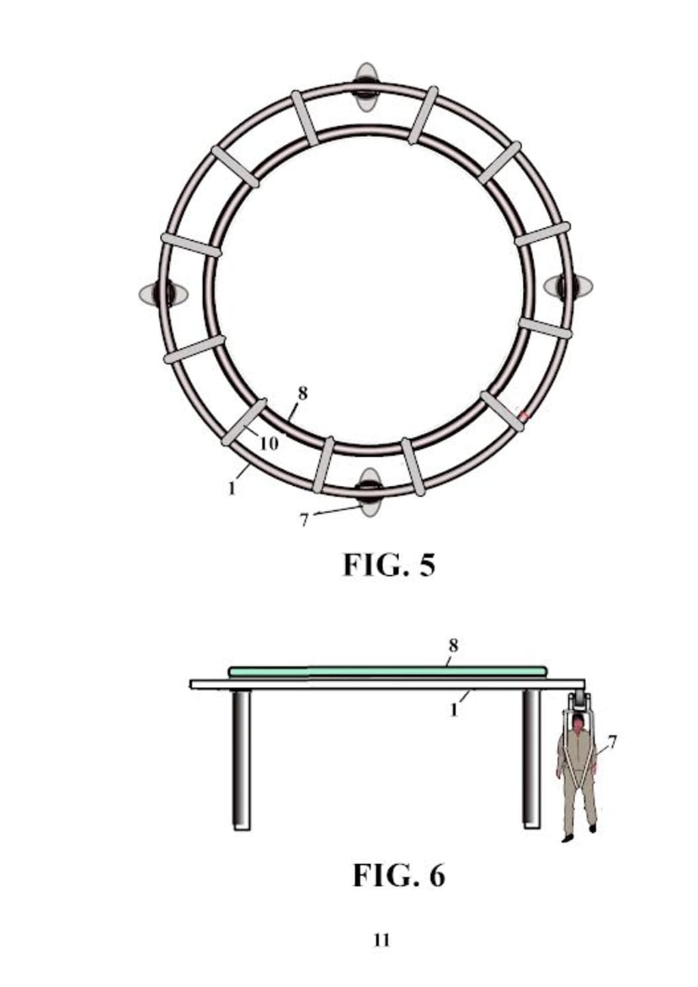 The rails can run over and/or alongside pools. The rails are tubular and cylindrical, and the tracks are flat and rectangular or can be shaped like a circuit or closed track in a circular or elliptical-rectangular form. The wheels may have a flat, arched, truncated-conical, or pulley-like periphery. The wheels can also be magnetic, in which case they adhere to and roll along the underside of the tracks or rails. The support elements hold the wheels by the ends of their axles. Bearings are optional since the speeds are low. A joint or pivot can be added for turning using the same rail. This allows the user and their harness to turn relative to the rail.