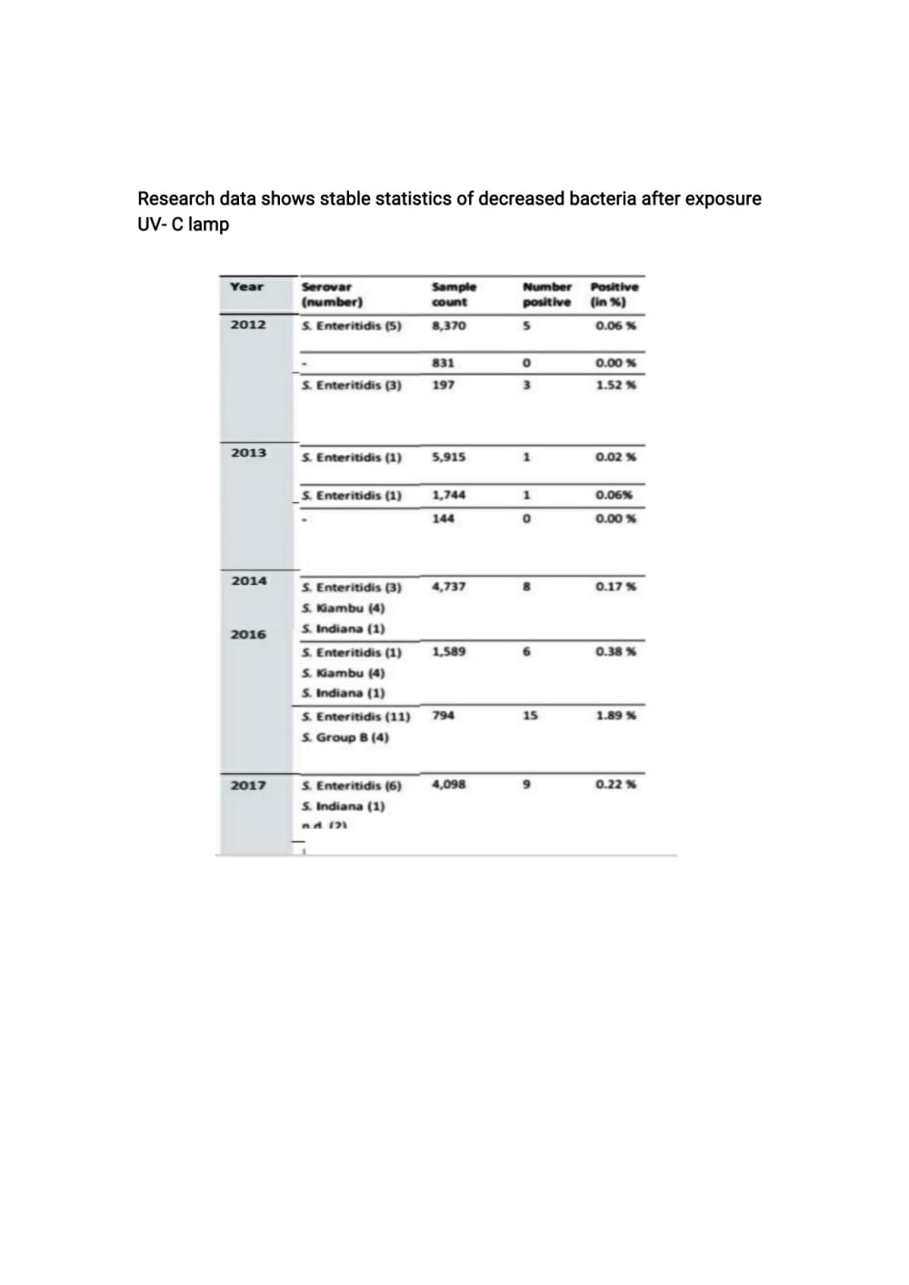 Recently researchers showed a significant result the research of UV-C LED radiation that prevent foodborne infections caused by Salmonella and Campylobacter with lamps emit UV light in the “C” wave range, which causes nucleic acid and protein damage in bacteria and reduce the risk of foodborne infections caused by Salmonella and Campylobacter.