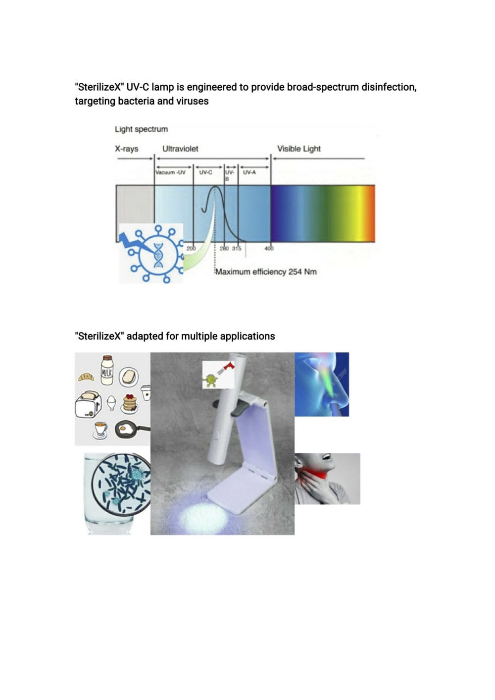 In recent years, the importance of hygiene and food safety has become increasingly prominent. Consumers and businesses alike are looking for innovative solutions to minimize the risks associated with bacterial contamination. "SterilizeX: Cutting-Edge UV-C Technology" a groundbreaking project that integrates compact and efficient UV-C lamps designed for easy integration into products with disinfection functionalities. This technology utilizes a broad UV-C spectrum with a peak at 267 nm, proven to be highly effective against many types of bacteria and viruses. The UV-C lamps are engineered to provide broad-spectrum disinfection, targeting bacteria and viruses on surfaces, food items, and even decrease the bacterial contamination of human respiratory system. Fodborne infections in extreme cases they can be life-threatening for people whose body’s immune systems are not yet fully developed or are impaired (small children, pregnant women and their unborn child, older people and people with pre-existing medical conditions).
