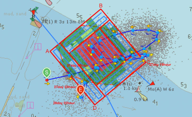 Calculate the drift of missing vessels, persons or objects (i.e. debris) at sea either forwards or backwards in time; Calculate the probable search area: Store home base locations of all available