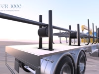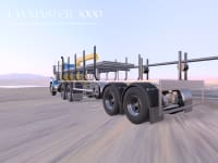 The LayMaster 3000 features a heavy-duty, all-terrain truck with a 30-foot trailer designed to navigate rugged environments. The truck is equipped with a robust powertrain, offering a diesel engine with optional hybrid or electric variants, ensuring adaptability to various project needs.
