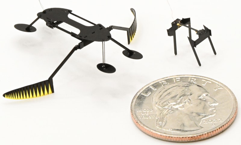 Currently, the WaterStrider’s design is tethered to an external power supply, which significantly interferes with locomotion on the water surface due to very low friction forces. However, in the near future, the WaterStrider design will be modified to enable onboard power and autonomy as well as provide compatibility with a range of wireless power sources.