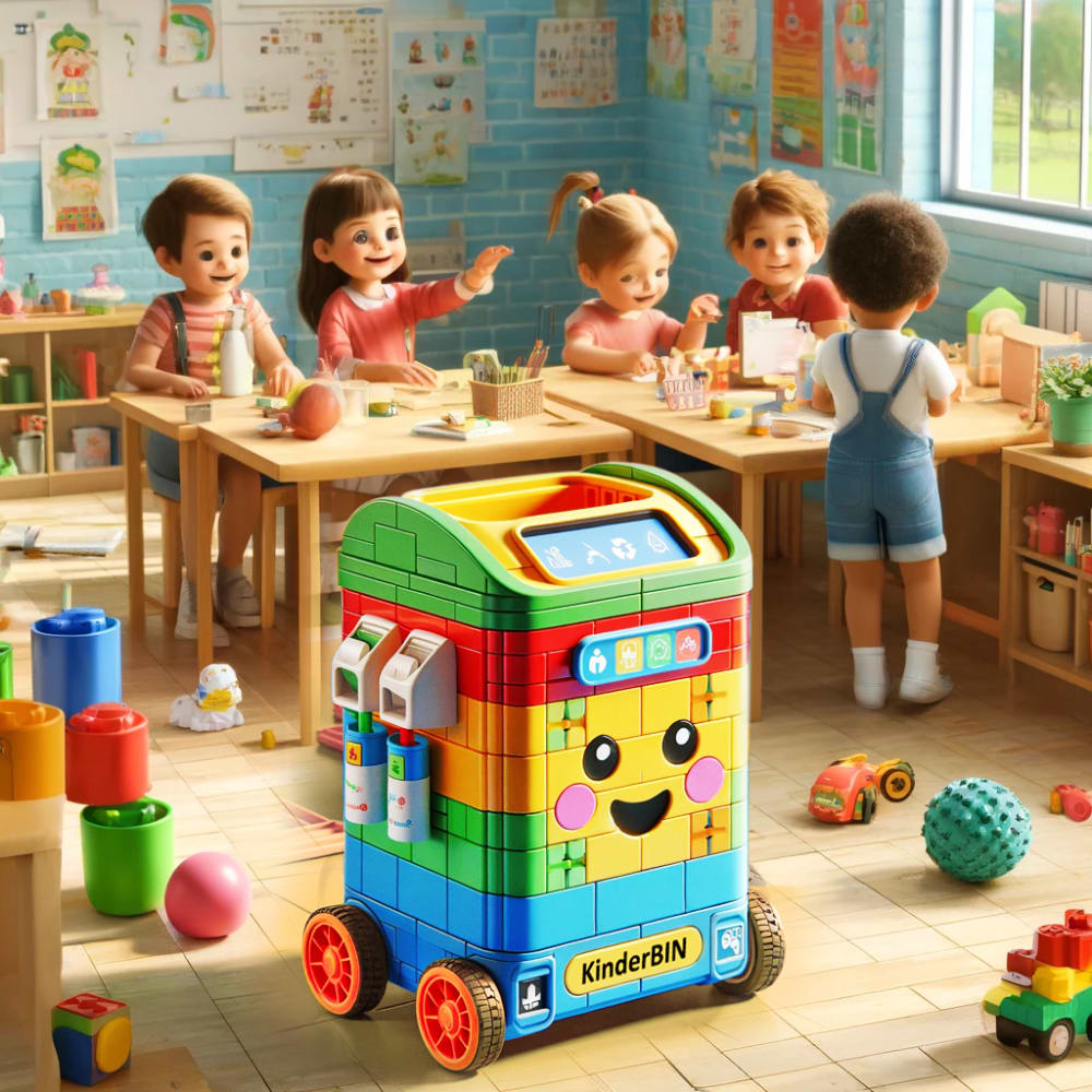 KinderBin is an innovative, child-friendly robotic dustbin designed to enhance environmental education in early childhood settings. Inspired by the engaging simplicity of lego blocks, this compact and mobile robot is tailored to foster responsible waste management practices among young learners in a playful and accessible manner.